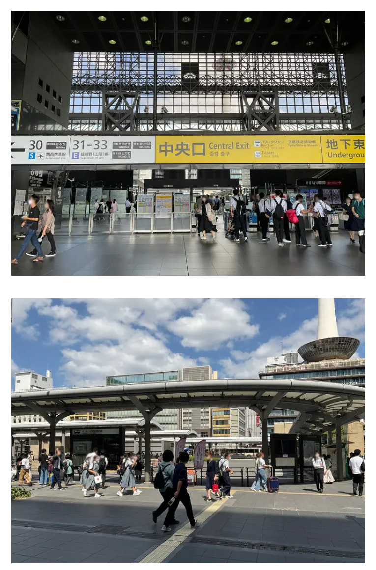 Kyoto Station integrates multiple transportation systems, including the subway, JR trains, Kintetsu Railway, buses, and taxis, making it a vital transportation hub in Kyoto. Whether traveling to attractions within Kyoto or to other cities, this station serves as a key transit point. The two main exits are the "Central Exit (Karasuma Exit)" on the north side and the "Hachijo Exit" on the south side.