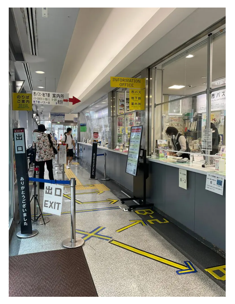 The ticket center is located near the comprehensive information board at the bus terminal, housing the City Bus & Subway Service Counter. If you are unsure which line to take, you can ask the staff for assistance.