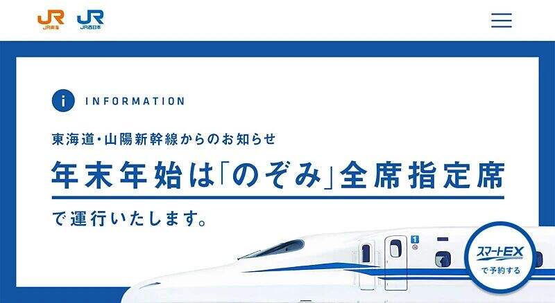 ② During peak travel periods in Japan (such as the New Year's Day holiday), some lines (such as the Nozomi train) will have all reserved seats, eliminating unreserved seats.