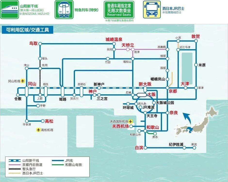 2.1 The Kansai Wide Pass, issued by JR West, is valid for a wide range of areas, south to Shirahama and Kii-Katsuura on the Kii Peninsula, west to Okayama and Takamatsu on Shikoku Island, north to Tsuruga, the western terminus of the Hokuriku Shinkansen, and to Tottori and Amanohashidate on the Sea of Japan. It's valid for 5 consecutive days, and even though the price has increased from JPY 10,000 to JPY 12,000, it still offers excellent value. If this isn't your first trip to the Kansai region and you'd like to explore areas beyond Osaka, Kyoto, and Nara, consider the Kansai Wide Pass, which offers a very low return on investment.