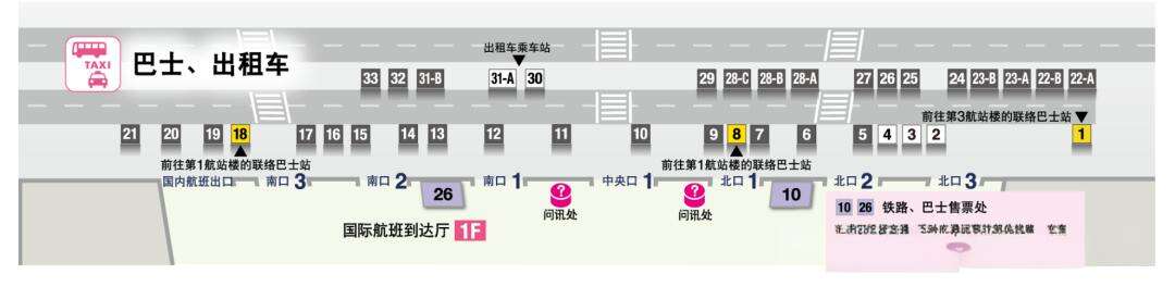 - Bus Ticket Purchase: There is a ticket office near the Passenger Service Center next to the Arrival Hall. After purchasing your ticket, proceed to the corresponding boarding area to board the bus.