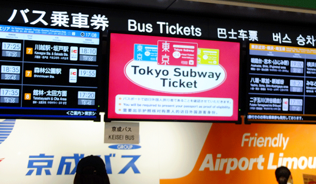 Tokyo Metro tickets can be purchased at the Keisei Bus Ticket Office or the Keisei Tourist Service Center on the first basement floor (8:30-19:30).