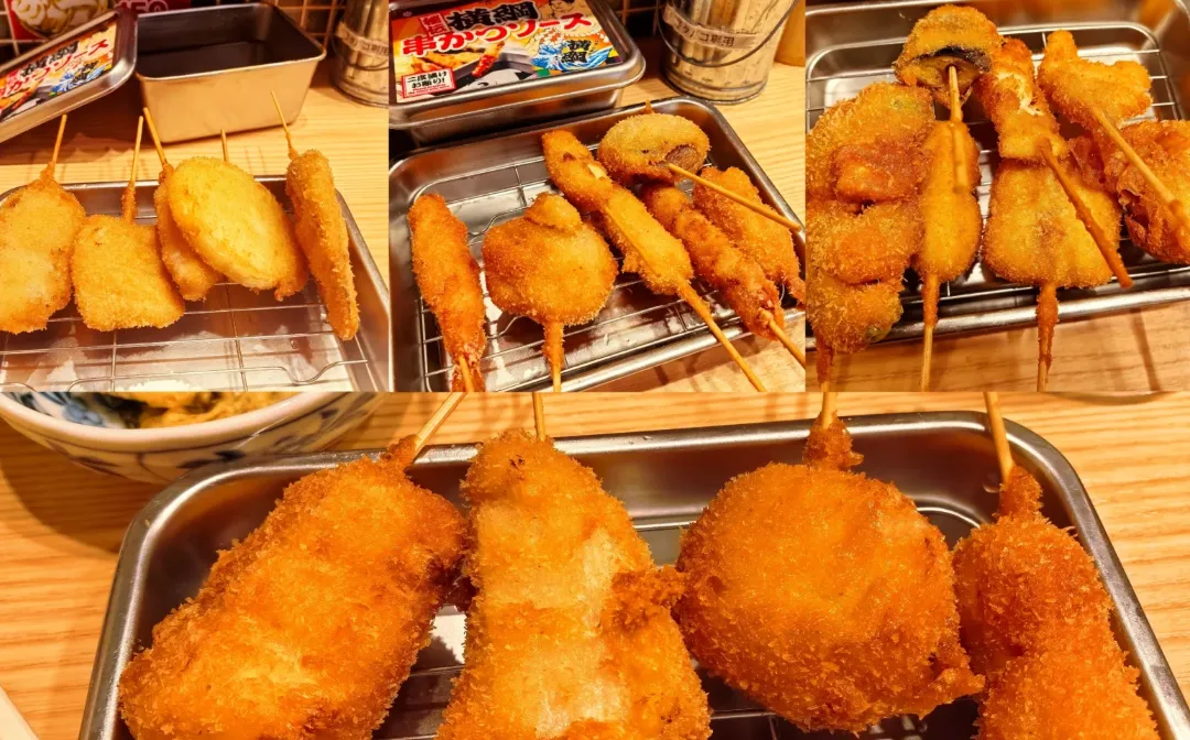 Kushi-Katsu is a snack in which various ingredients (pork, beef, seafood, vegetables, etc.) are skewered, deep-fried, and then eaten with a special sauce. Katsuretei in Namba, near Dotonbori, is a renowned kushikatsu restaurant that attracts diners with its wide variety of kushikatsu and affordable prices. Katsuretei offers over 30 different kushikatsu varieties, ranging from classic pork and beef skewers to creative creations like cheese mochi and mentaiko skewers. Each skewer costs between 100 and 300 yen, and paired with beer or oolong tea, it's a great way to experience the local flavors of Osaka.