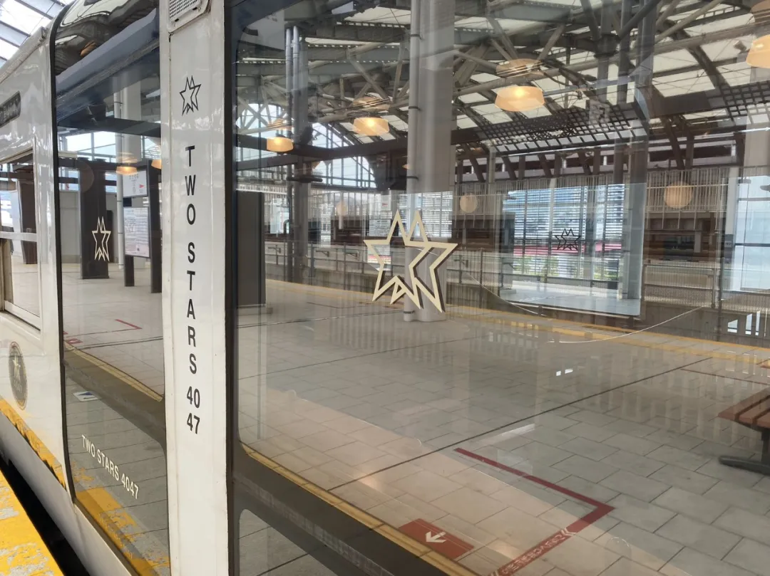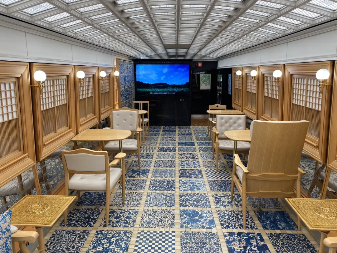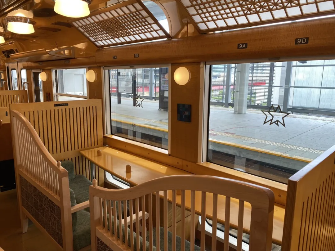 Even more captivating is the train's design, designed by JR Kyushu's official designer, Eiji Mitooka. Its pearly white body and golden twin-star logo create a captivating scene, like a seascape.