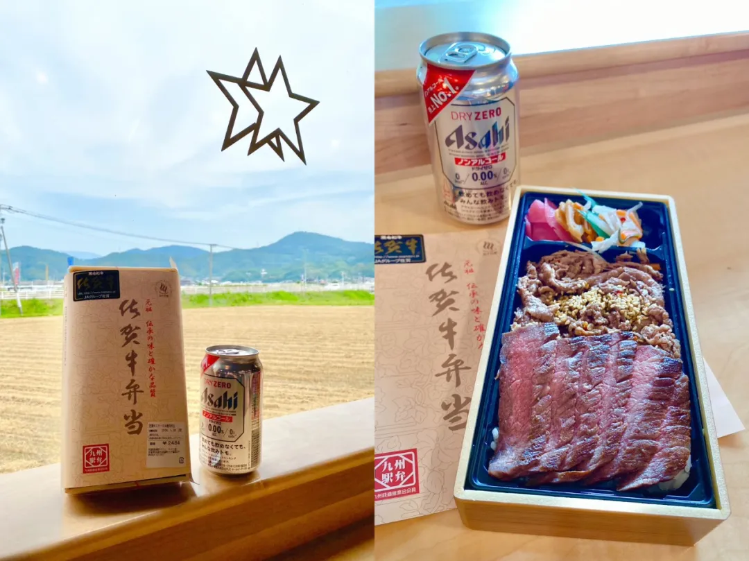 I bought a box of Saga's specialty Wagyu bento before getting on the bus, and then had a delicious meal after driving. I was so greedy that I cried.