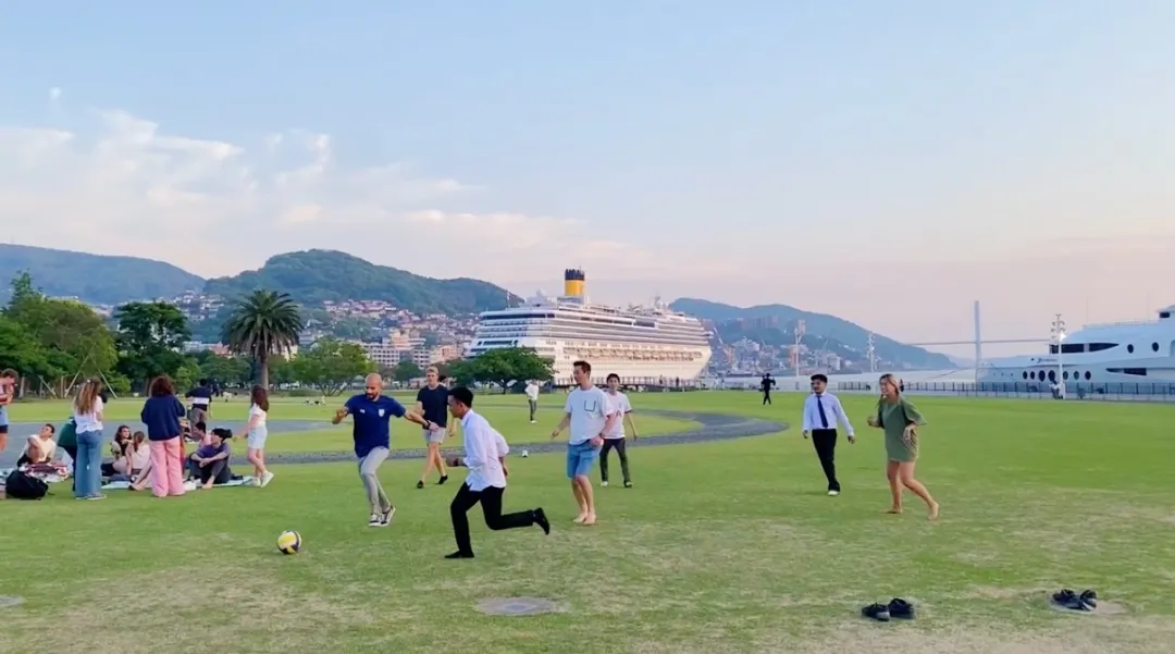 The most unforgettable moment was our final destination, Nagasaki. That evening, the weather was beautiful. We strolled along the long harbor, enjoying the sea breeze. We watched the sunset from the rooftop of an art museum, and then quickly joined the locals playing basketball downstairs. The memory of that afternoon was almost unreal.