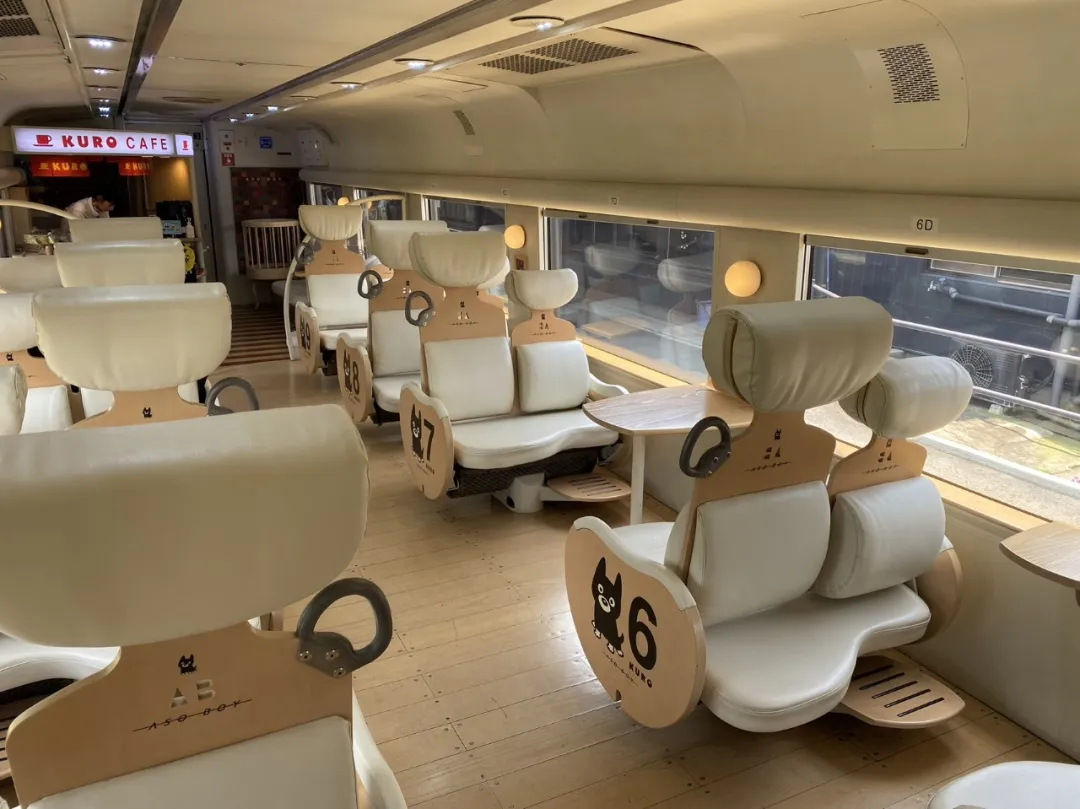 The design of the train was inspired by the mascot Kuro. It is said that there are 101 Kuro mascots on the train. I don’t know if anyone has found them all.