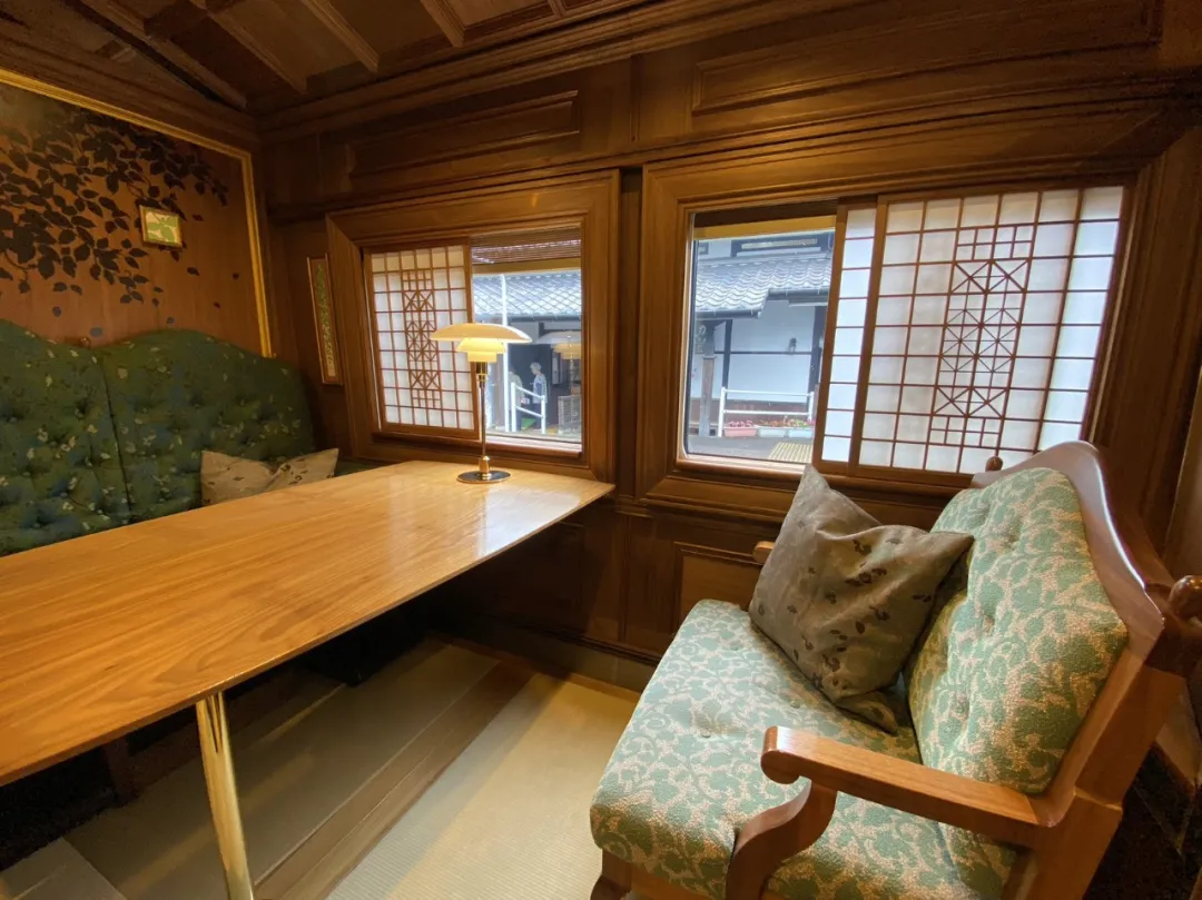 The green-painted forest-style body, the interior made of original wood and brass, the shaking and saying "what's more" standing at the connection between the vehicles, inadvertently made me dream of traveling by train in the old days.